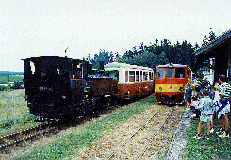 ALT=Setkání U47.001 a 705 v žst. Horka 27.7.1997